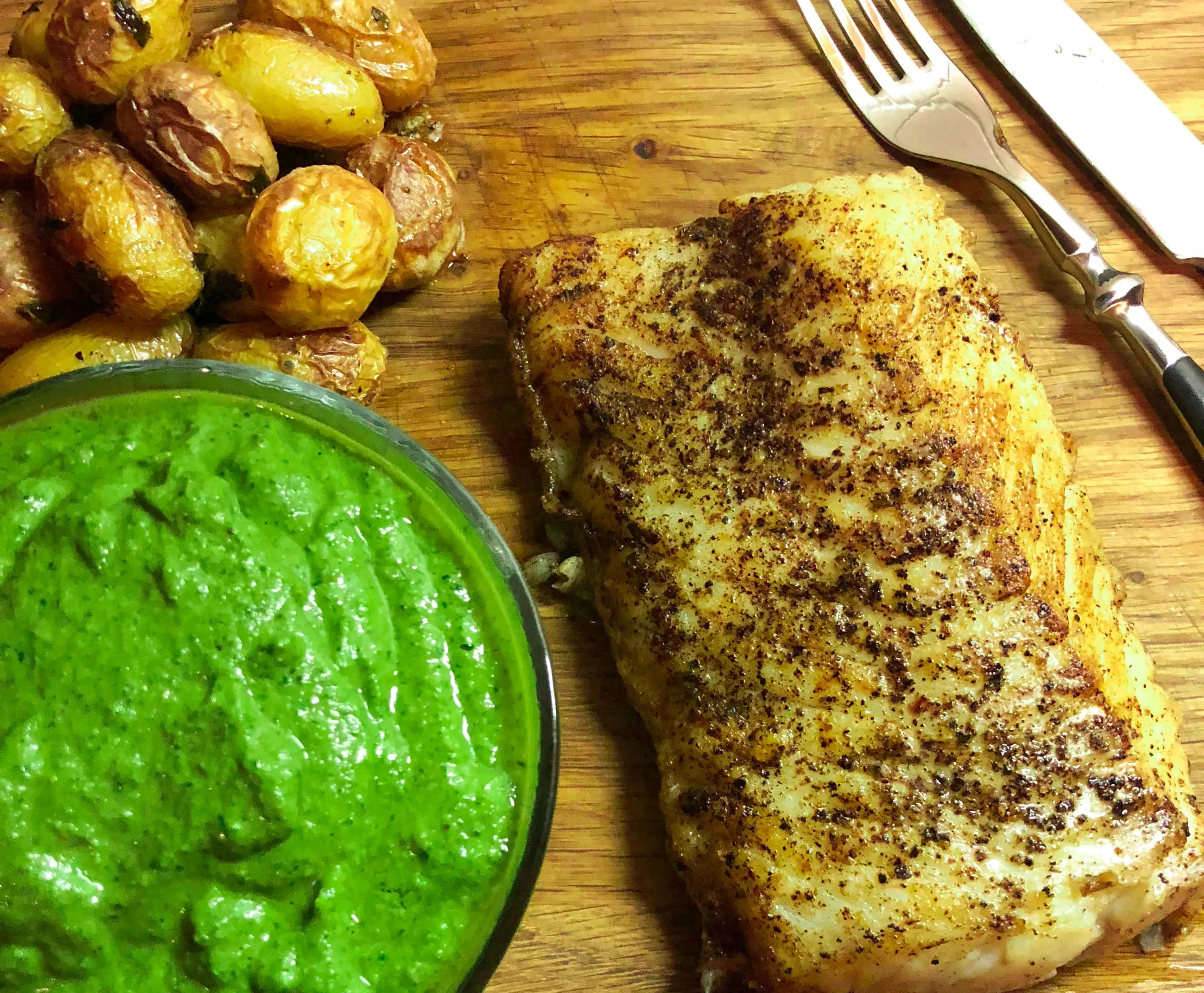 A lot of people get intimidated cooking fish but this recipe is pretty much fool proof and on this first day of spring it is a fresh start to the season. I served the loin with a salsa verde by Mr. Slater and my freshest roast potato recipe (potatoes roasted in olive oil with basil & mint)!